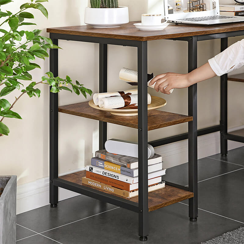 With the warm rustic brown tone surrounded by matte black steel, the home office computer desk is a charming and comfortable existence in the room, easing your eyes and mind when working at home.