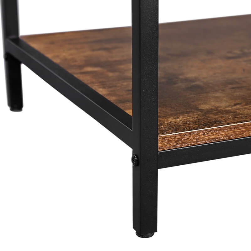 Combining rustic brown shelves, a black iron frame, and metal drawer handles, this coffee table is the centerpiece to define your home by giving it a charming industrial look and lending an antique, cozy flair.