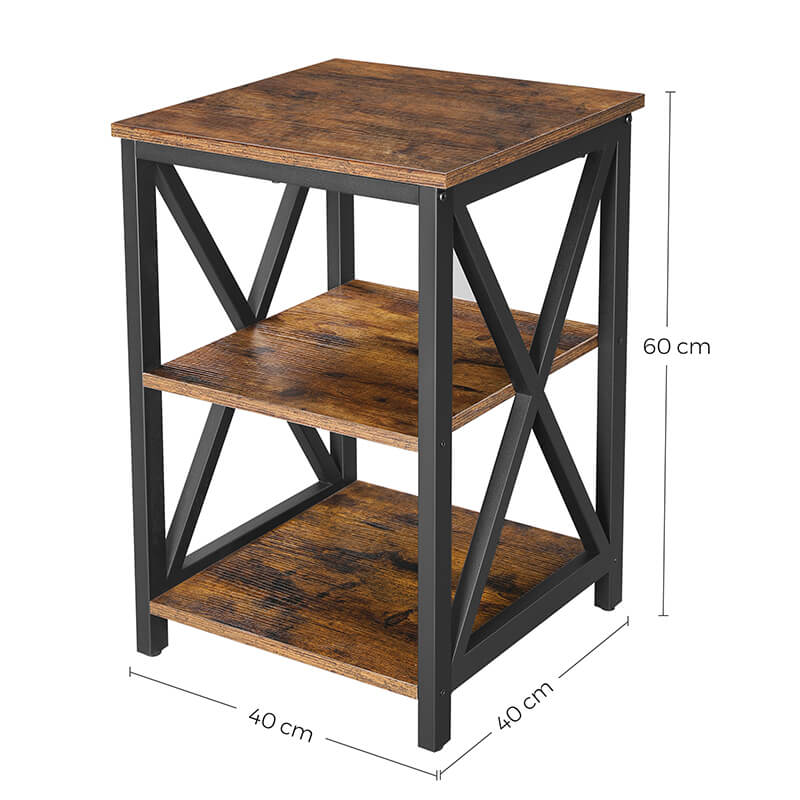 Never underestimate the beauty of details. This side table has a X-shaped design on both sides for a winsome charm, a matte black metal frame, and 3 engineered wood shelves finished in warm rustic brown tones. See? Beauty in details.