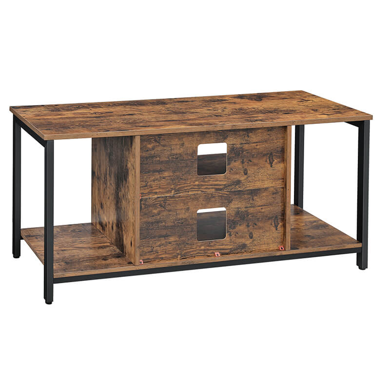 Sometimes, simplicity is best. This simple TV console unit offers everything you need right in front of you. No more rummaging through a cabinet looking for your favorite movie, game, or snack. Grab what you need on the open shelf and get back to relaxation.